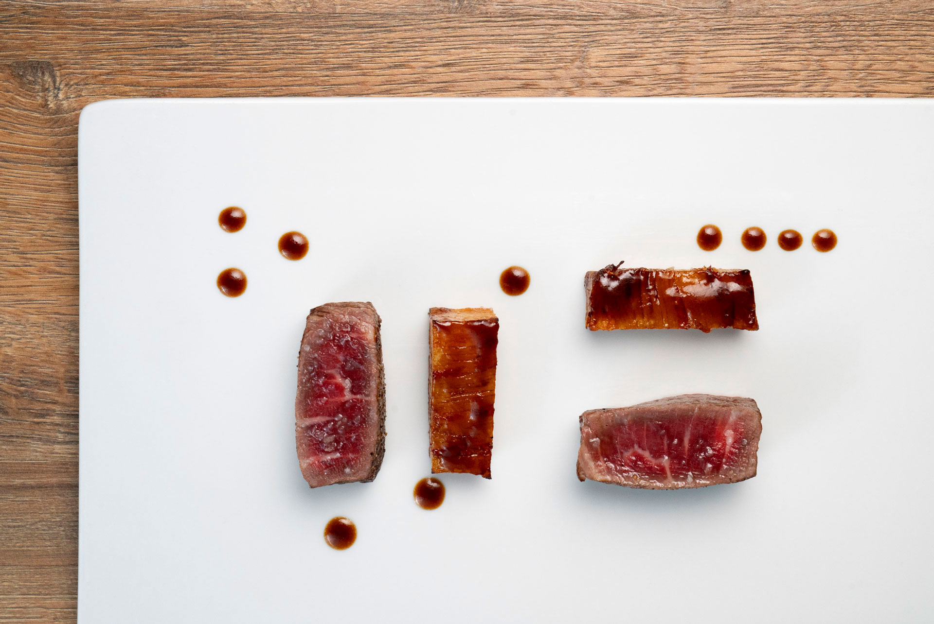 Solomillo de buey, pudín de patata y beicon glaseado con salsa de cebolla31,00